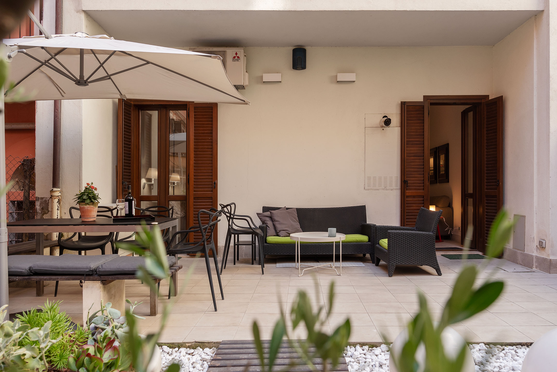 All’ombra di Via Veneto e incastonato nei vicoli alle spalle di Via Sistina (amanti del teatro, stiamo pensando a voi!) Barberini ha un extra che pochi altri appartamenti di simile grandezza possono vantare in questa parte di Roma: un vero giardino, certo non enorme, ma sufficiente per poterlo sfruttare come un ambiente in più a tutti gli effetti, per esempio per colazioni, oppure cene, all’aperto (il clima mite di Roma per la maggior parte dell’anno in questo caso è di grande aiuto).